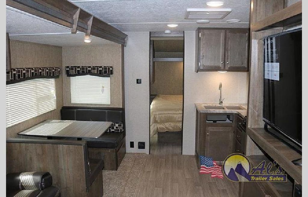 Feature packed with panoramic windows oversized 12 volt residential refrigerators 15 000 btu a c s tri fold sofas 50 tv s and walk in showers the forest river vibe has the most standard features of any fiberglass ultralight on the market. Select 2017 vibe by forest river m 268rks options 2017 note prices include led ground effect lighting recessed stove with glass cover decorate window treatments and night shades. As you enter the vibe 268rks travel trailer by forest river you will find that the kitchen is located in the rear. It is a travel trailer and is for sale at 20000.